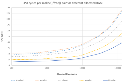 As we can see (Figure 1), CPU-wise, we were able to outperform all the allocators at least by 1.5x.