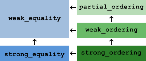 Here, we can take advantage of a really important aspect of the comparison categories: convertibility. Each type is convertible to all of its less strict versions, and each value is convertible to its less strict equivalents.
