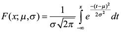 Given these values the normal distribution is defined by its cumulative density function, or cdf, which is the function in x that gives the probability that a random number will be less than x.
