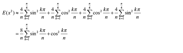 There is a statistical theorem called the law of large numbers which states that as n tends to infinity, the sum of n random numbers independently drawn from any single given distribution tends to n times the average of that distribution. If our assertion that the steps are more or less independent to each other is valid we should be able to approximate the average tour length with n times the average step length. For very large n, the average step length will be approximately equal to the average distance between two randomly selected points on the circumference of a circle of unit radius. In the same way that we can add up a finite set of step lengths and divide by the number of them to get the average, we can integrate the lengths of steps to cities separated by an angle of θ around the circumference and divide by 2π.
