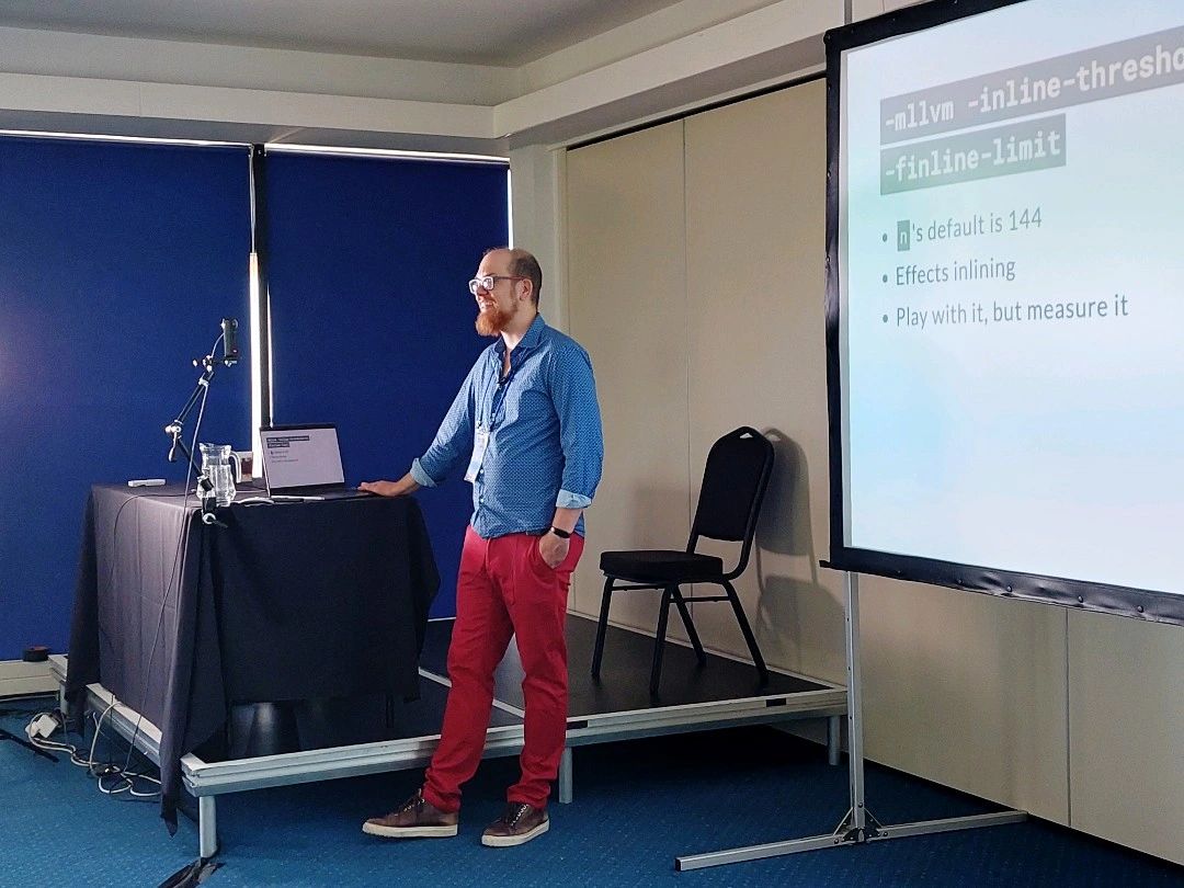 On the second morning, I had two consecutive slots to deliver a half-day workshop about how to keep your binaries small. During the pandemic, I had delivered a half-day workshop online… but obviously, that was a vastly different experience.