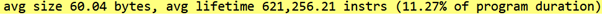 | Total | avg lifetime 621,256.21 instrs | This is the average number of instructions per block between allocation and deallocation. Lower is better, also shown as a %. |